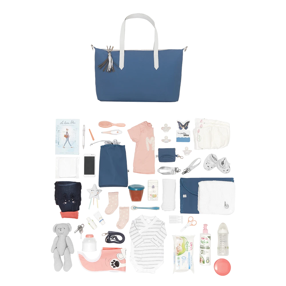 - Anses larges et confortables pour porter le Sac à langer champs-elysees bleu minéral à l’épaule,