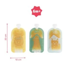 Purée, yaourts, compotes, encore purée, … Vous n’avez que l’embarras du choix pour remplir et re-remplir ces gourdes réutilisables Badabulle. Elles sont faciles à remplir et à nettoyer grâce à leur grande ouverture par le bas. Elles sont hermétiques grâce à leur système de fermeture zippée ultra résistant. Les 15 gourdes de ce set vous accompagne au parc, chez la nounou et même à l’école ! Pour les petits et les plus grands, ces gourdes de 150ml sont réutilisables jusqu’à 20 fois. Si vous aimez préparer à l’avance les repas de votre bébé, remplissez ces gourdes de vos délicieuses purées ou compotes maison et conservez les au frigo ou au congélateur. Vous pouvez les faire réchauffer au bain marie. Mixte et neutre, le set comprend 3 designs différents, de quoi plaire à tout le monde ! Elles sont transparentes pour bien voir ce qu’il y a dedans, et comprennent une graduation.