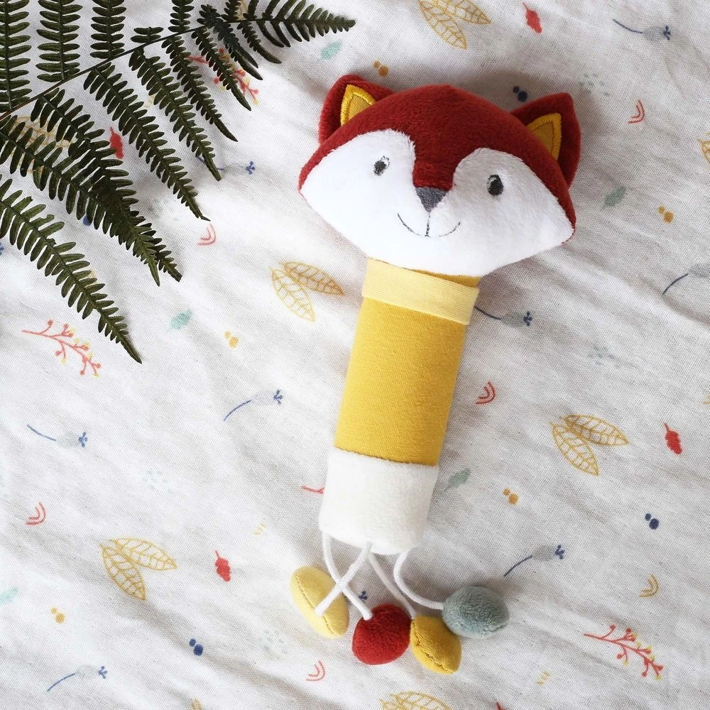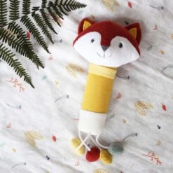 Le Bâton musical renard – cache cache en forêt de chez Trois kilos Sept. Amusez votre enfant en tirant sur les pompoms, il fera pouet. Votre bébé pourra se distraire en tirant lui même. Développez les sensations de touchers, de vue et d’ouie chez votre enfant.