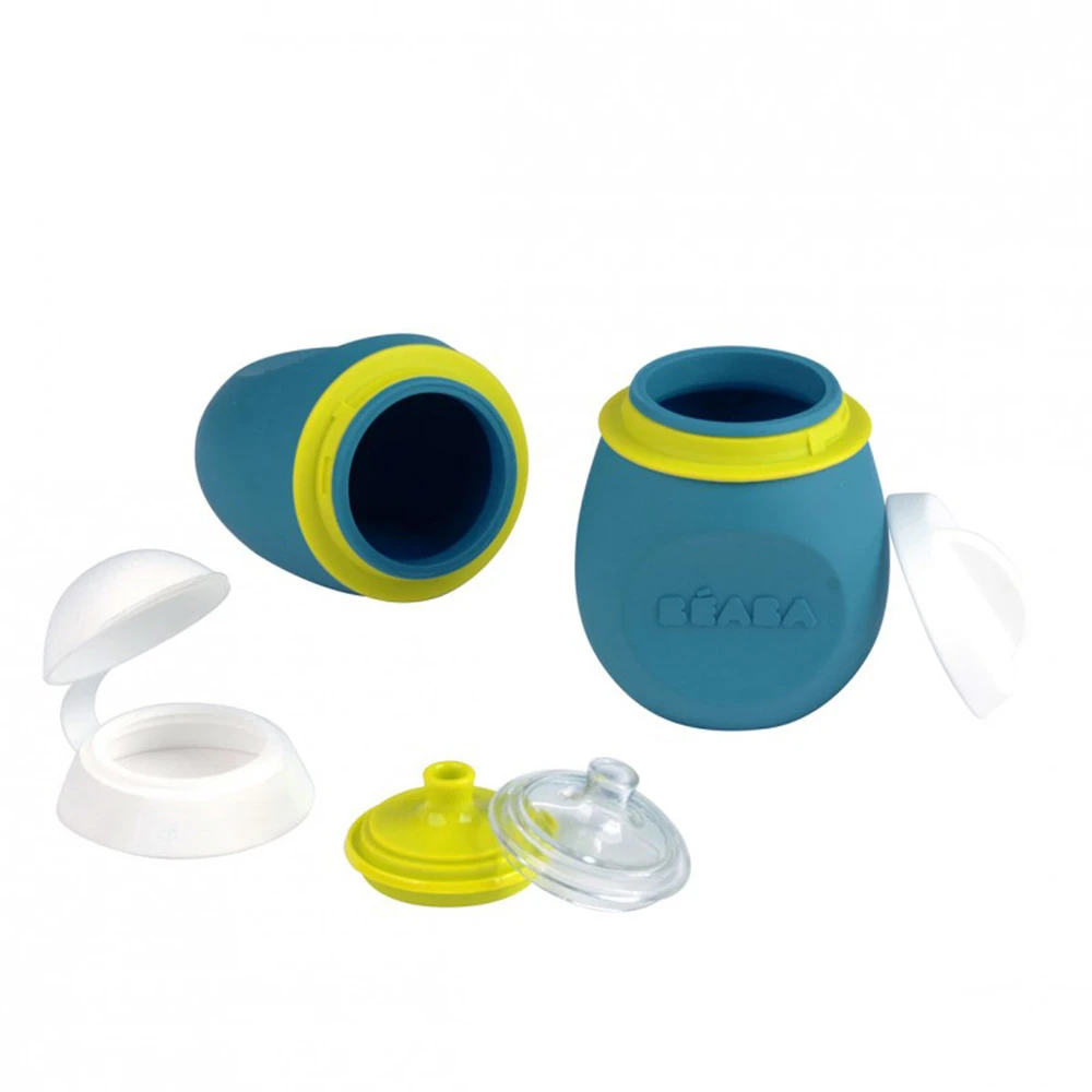 - Vendus avec 2 embouts : une tétine 1er âge silicone (6 – 12 mois) et un embout 2e âge