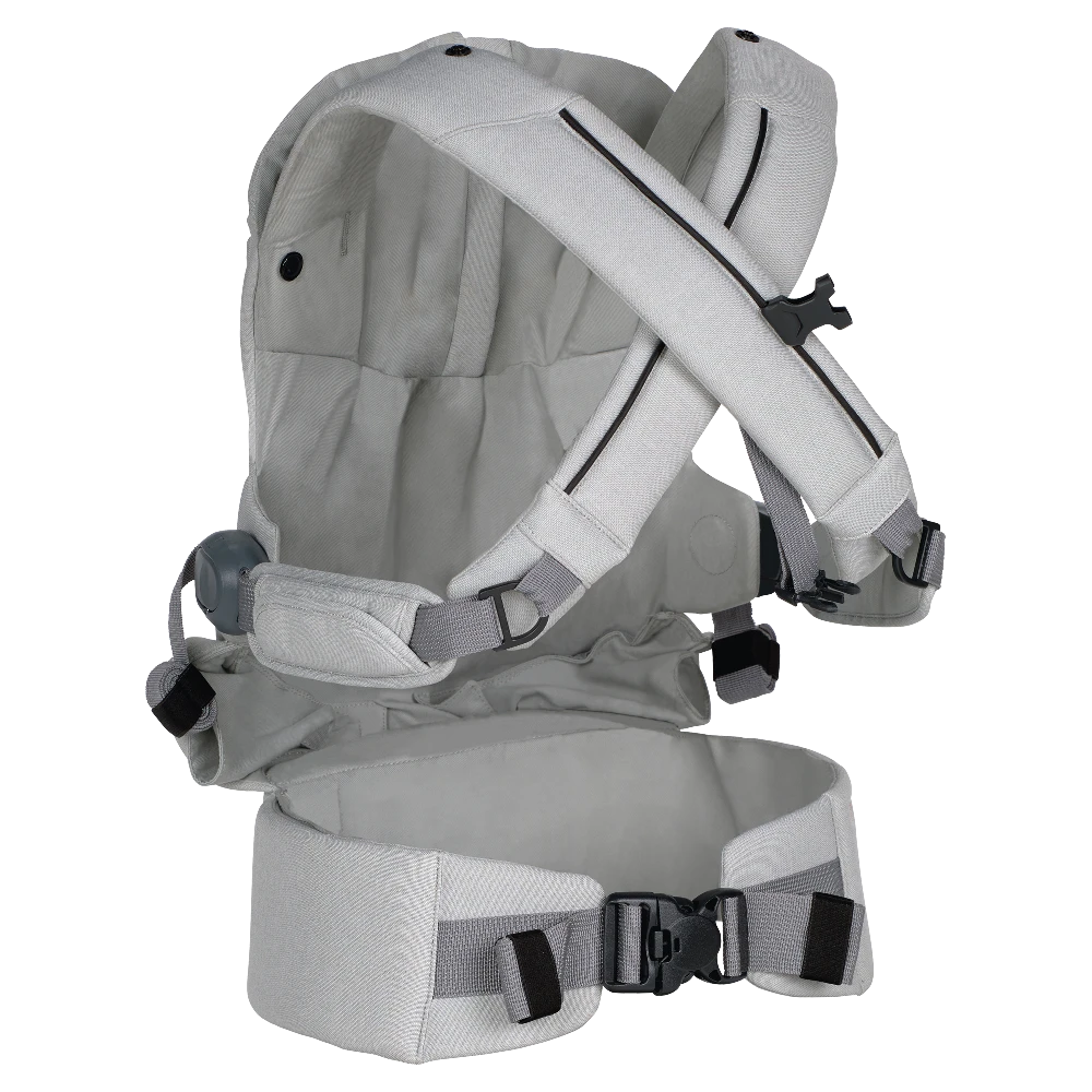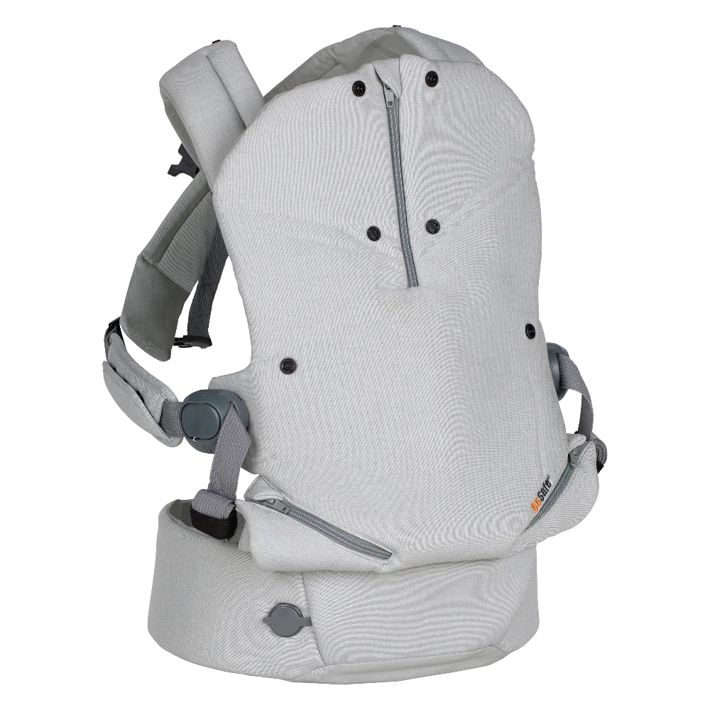 - Des fermetures éclair à réglage continu et protégées permettent une position d’assise ergonomique lorsque le bébé est assis face au monde.