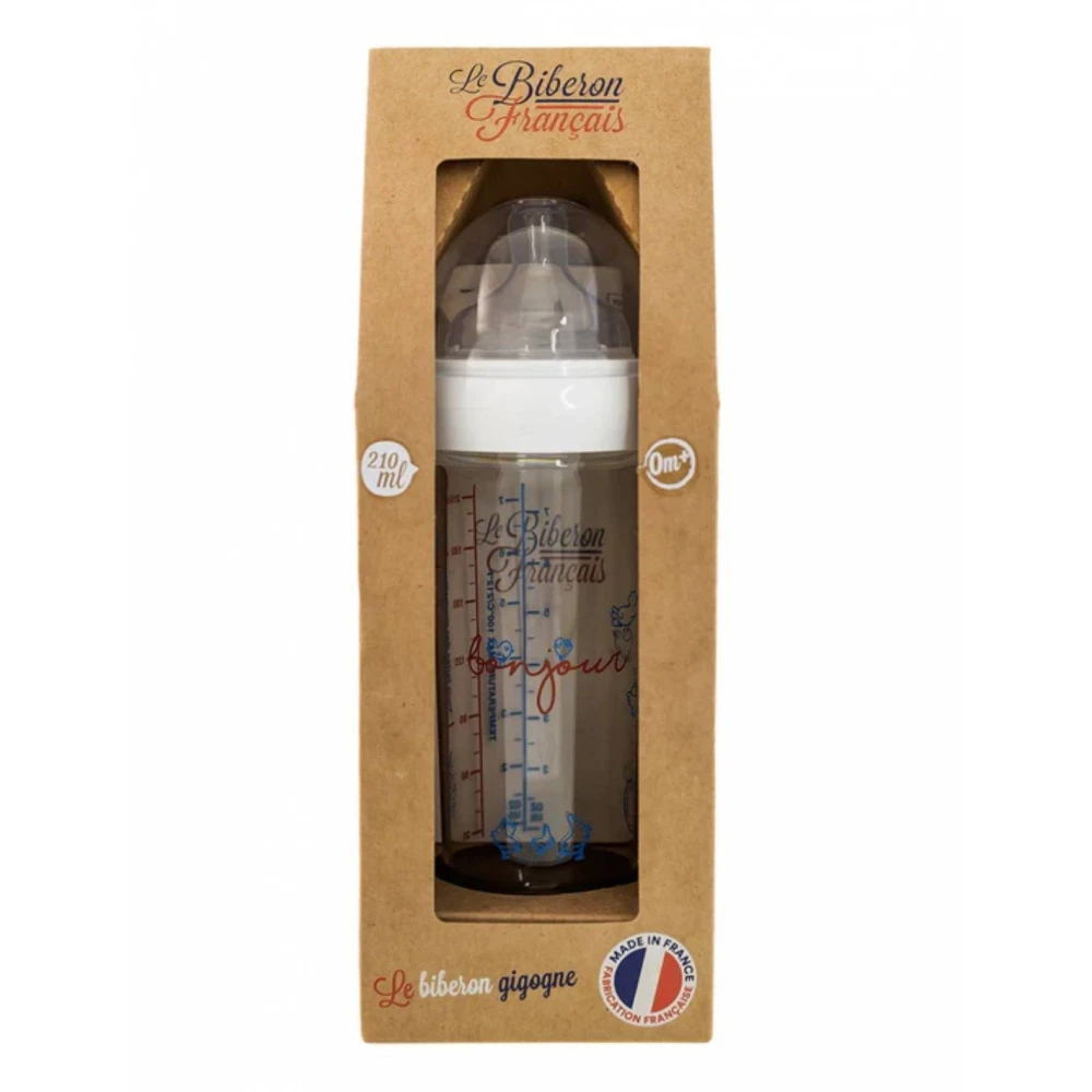 Optez pour le Biberon 210 ml 0-6 mois bonjour de la marque Le Biberon Français. Utilisable de 0 à 6 mois. Le biberon est très affiné pour une prise en main agréable du nourrisson. Il est équipé d’une tétine S qui a la possibilité d’être remplacée par une tétine de taille M pour convenir aux enfants dès 6 mois.