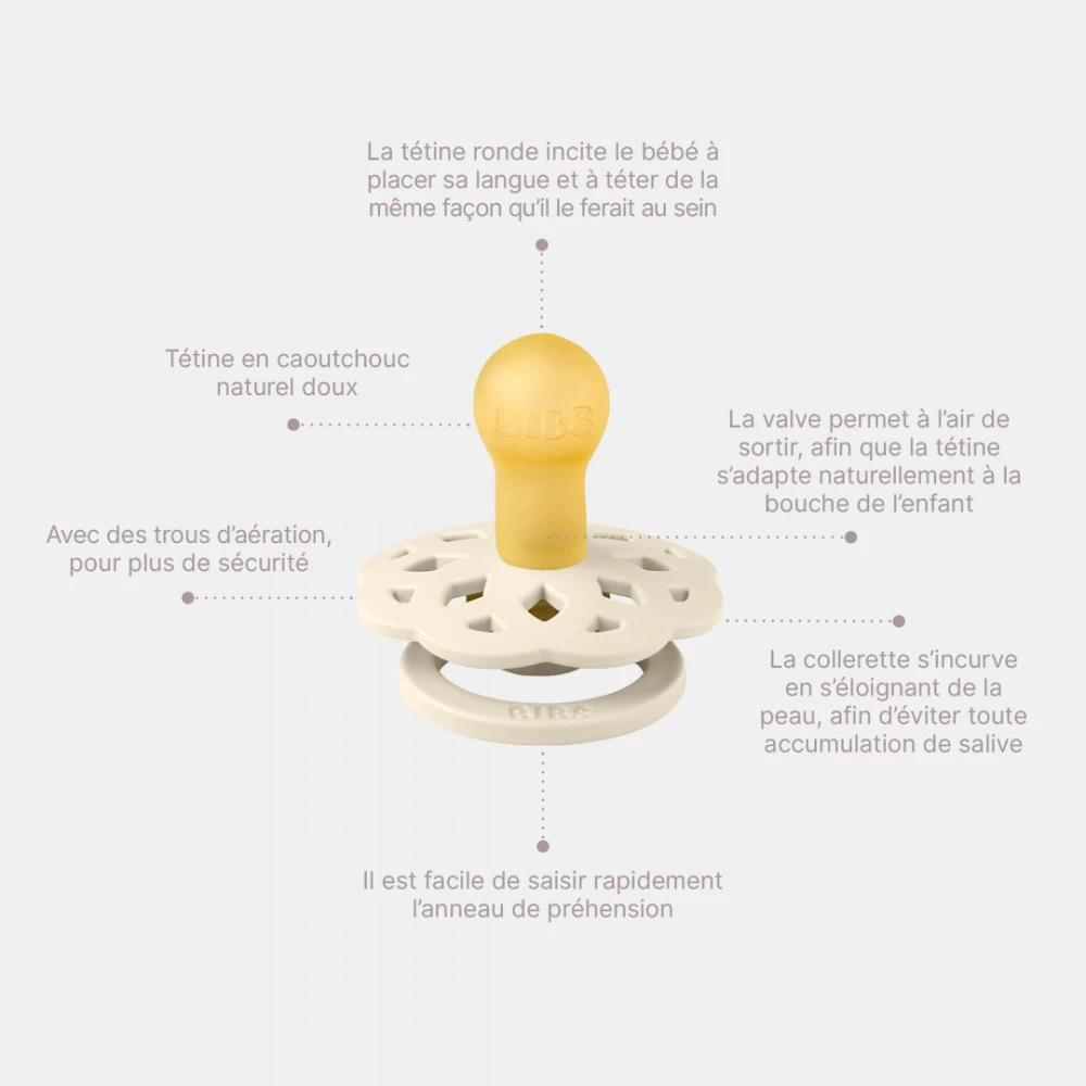 Optez pour le Pack de 2 sucettes bohème caoutchouc 6 mois+ dark oak et blush de chez Bibs. Utilisable dès 6 mois, elles seront idéales pour rassurer et réconforter bébé. La tétine ronde de cette sucette en caoutchouc incitera bébé à placer sa langue et à téter de la même façon qu’il le ferait au sein. La valve permettra à l’air de sortir pour que la tétine s’adapte naturellement à la bouche de bébé. La collerette s’incurve en s’éloignant de la beau de bébé pour éviter l’accumulation de salive. Pratique, ces sucettes Bibs sont compatibles avec les attaches sucettes Bibs.