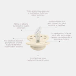 Optez pour le Pack de 2 sucettes infinity silicone anatomique 6 mois+ blush et woodchuck de chez Bibs. Utilisable dès 6 mois, elles seront idéales pour rassurer et réconforter bébé. La tétine anatomique en silicone a un embout courbé. Cela incitera bébé à placer sa langue et à téter de la même façon qu’il le ferait au sein. L’embout courbé fait que votre enfant n’aura pas besoin de téter aussi fort qu’avec une tétine ronde pour qu’elle s’aplatisse complètement sa bouche. La valve permettra à l’air de sortir pour que la tétine s’adapte naturellement à la bouche de bébé. La collerette est munie de cercle entrelacés qui représentent le cycle de la vie, l’infini et l’éternité. Pratique, ces sucettes Bibs sont compatibles avec les attaches sucettes Bibs.