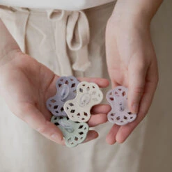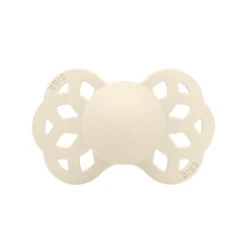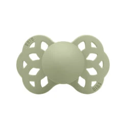Optez pour le Pack de 2 sucettes infinity silicone anatomique 6 mois+ ivory et sage de chez Bibs. Utilisable dès 6 mois, elles seront idéales pour rassurer et réconforter bébé. La tétine anatomique en silicone a un embout courbé. Cela incitera bébé à placer sa langue et à téter de la même façon qu’il le ferait au sein. L’embout courbé fait que votre enfant n’aura pas besoin de téter aussi fort qu’avec une tétine ronde pour qu’elle s’aplatisse complètement sa bouche. La valve permettra à l’air de sortir pour que la tétine s’adapte naturellement à la bouche de bébé. La collerette est munie de cercle entrelacés qui représentent le cycle de la vie, l’infini et l’éternité. Pratique, ces sucettes Bibs sont compatibles avec les attaches sucettes Bibs.