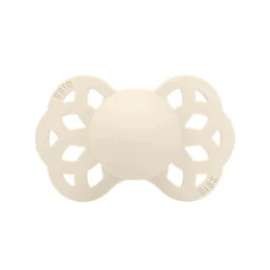 Optez pour le Pack de 2 sucettes infinity silicone symétrique 6 mois+ ivory et sage de chez Bibs. Utilisable dès 6 mois, elles seront idéales pour rassurer et réconforter bébé. La tétine symétrique en silicone a un embout en forme de goutte légèrement aplatie. La partie plate empêchera bébé d’enrouler sa langue autour de la tétine pour rester à plat et qu’il puisse facilement l’écraser contre son palais. L’embout physiologique fait que votre enfant n’aura pas besoin de téter aussi fort qu’avec une tétine ronde pour qu’elle s’aplatisse complètement sa bouche. La valve permettra à l’air de sortir pour que la tétine s’adapte naturellement à la bouche de bébé. La collerette est munie de cercle entrelacés qui représentent le cycle de la vie, l’infini et l’éternité. Pratique, ces sucettes Bibs sont compatibles avec les attaches sucettes Bibs.