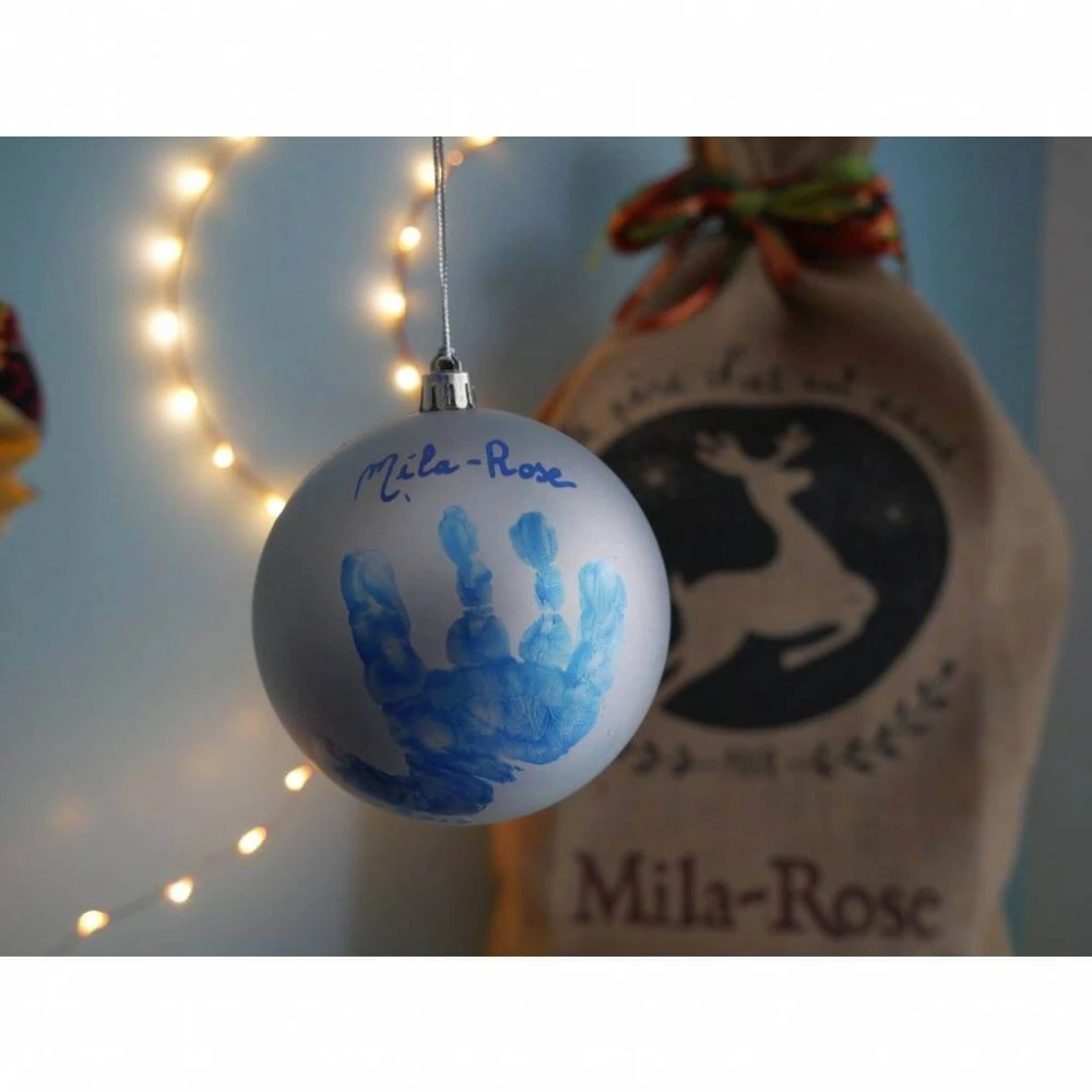 La Boule de noël empreinte argenté de chez Baby Art. Personnalisez vos décorations de Noël avec le nom et l’empreinte de main de votre bébé. Faites de cette saison festive un moment unique pour vous et votre famille. Plusieurs couleurs sont disponibles pour parfaire la décoration de votre sapin de Noël et garder un souvenir précieux des premières fêtes avec votre bébé.