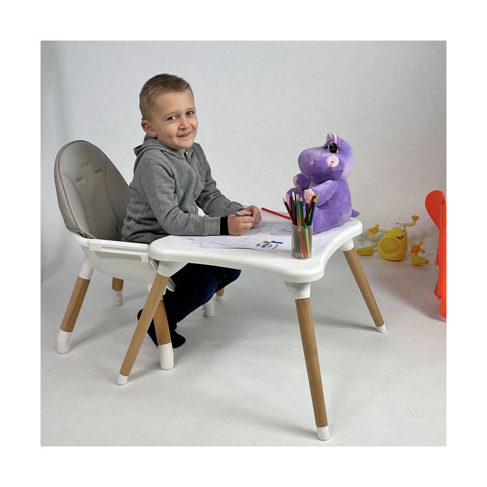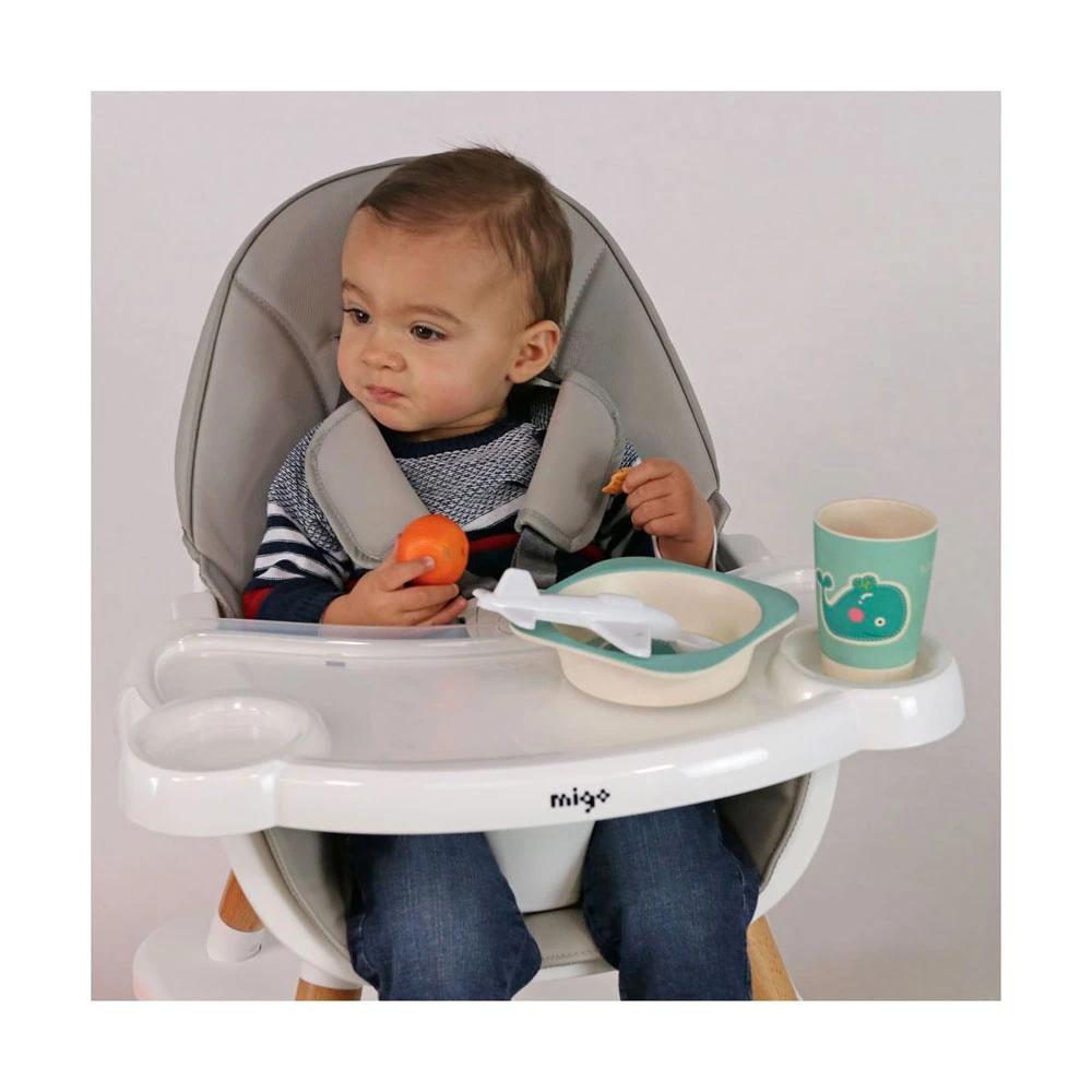 La chaise haute évolutive Eva de chez Migo ! 2en1, elle s’utilise comme une chaise haute dès 6 mois puis comme une petite chaise avec bureau dès 3 ans. Elle possède un harnais 5 points pour un maximum de sécurité lors de son utilisation. Cette chaise haute Migo est également dotée de pieds en hêtre démontables équipés de patins anti-dérapants.