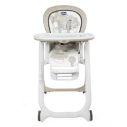 La Chaise haute polly progres5 4 roues clouds de chez Chicco. Elle va suivre la croissance de l’enfant de la naissance jusqu’à ses 3 ans grâce à ses 5 configurations :