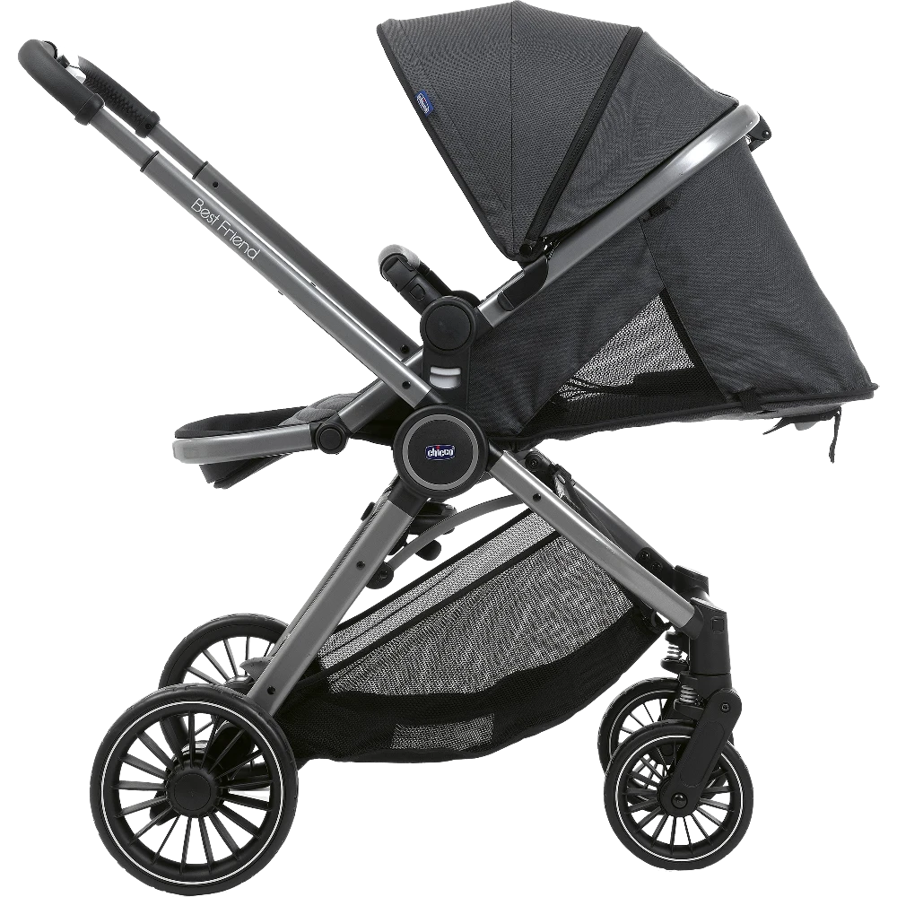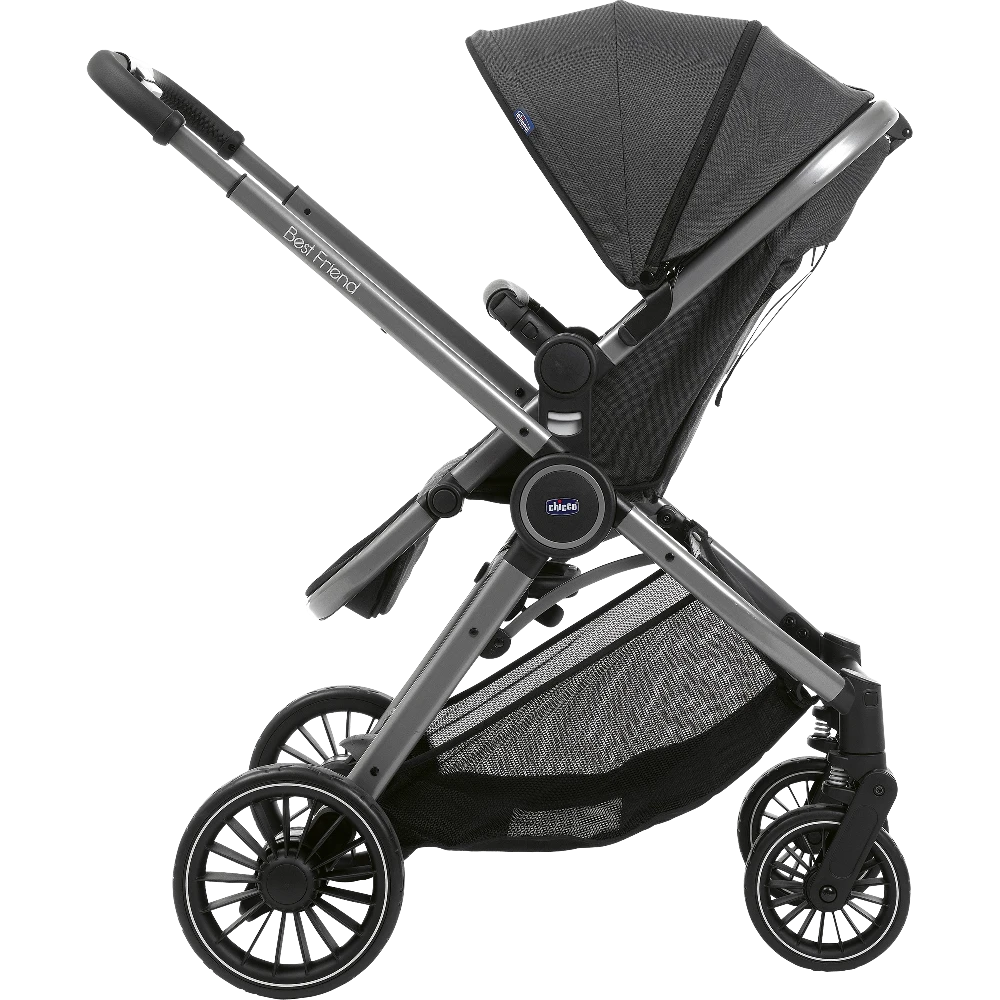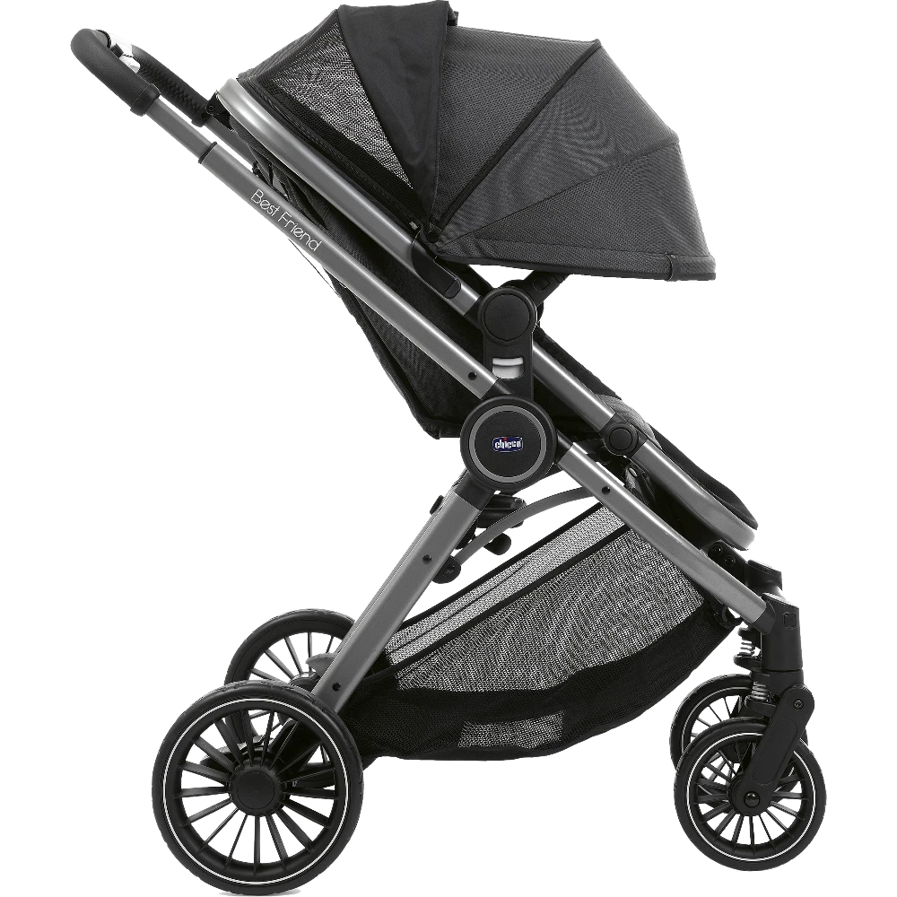 - La poussette Best Friend Pro est équipée d’une capote extensible avec une fenêtre en maille filet dissimulée par un zip pour garder un oeil sur bébé et permettre une bonne circulation