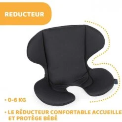 En groupe 0+ (0-13 KG), il s’installe dos à la route avec le système Isofix et Top Tether ou avec les connecteurs Isofix et la ceinture du véhicule. Votre enfant est attaché avec le harnais de sécurité à 5 points.