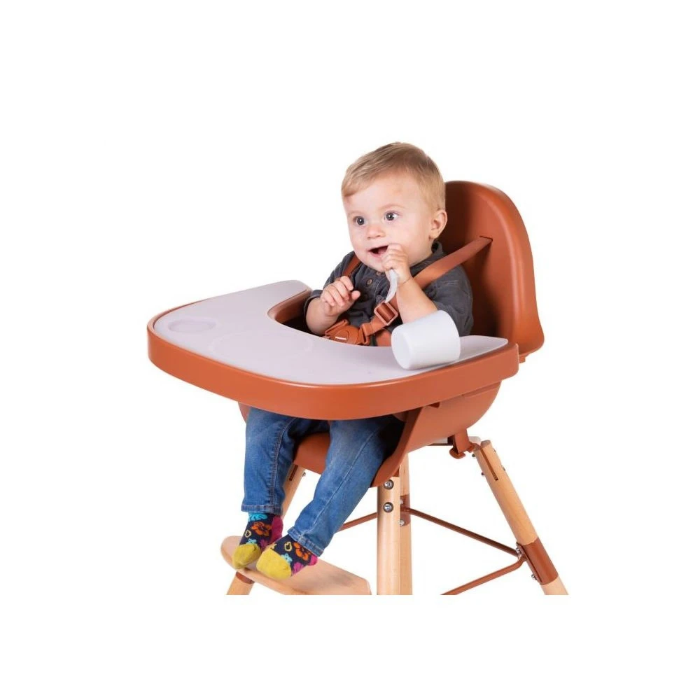 Caractéristiques de la Tablette de chaise evolu rouille en silicone de la marque Childhome. Elle se glisse facilement sur la chaise Evolu. Idéal pour accompagner les premiers repas de votre bébé. Elle possède un revêtement en silicone pour une meilleure accroche de l’assiette et/ou de la tasse.