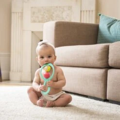 - Hochet Swing : avec ses couleurs vives, deux boules à faire tourner et des grelots à faire tinter, il fait l’unanimité chez les bébés!