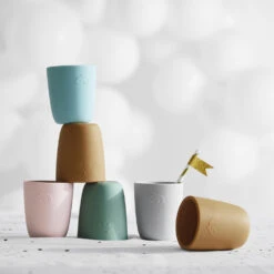 Le mini mug en silicone est conçu pour donner aux tout-petits une prise ferme, lorsqu’ils pratiquent leur habileté à boire.