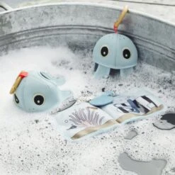 Faites trempette à Jelly, puis laissez couler l’eau en la retournant. Cette curieuse méduse adorera vous faire passer un bon moment à l’heure du bain.