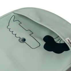 L’ensemble de bavoirs pratique est de deux tons de bleu et Antee le fourmilier et Nozo le rhinocéros sont prêts à garder votre tout-petit au sec et propre tout en rendant le repas très amusant. Caché dans la poche, vous trouvez une pomme et une carotte