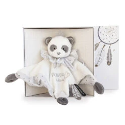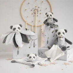 Tout en douceur et en camaïeux de gris, avec ses touches de paillettes argent, cet adorable panda veillera comme un prince sur tous les petits … pour que chaque instant ressemble à un doux rêve.