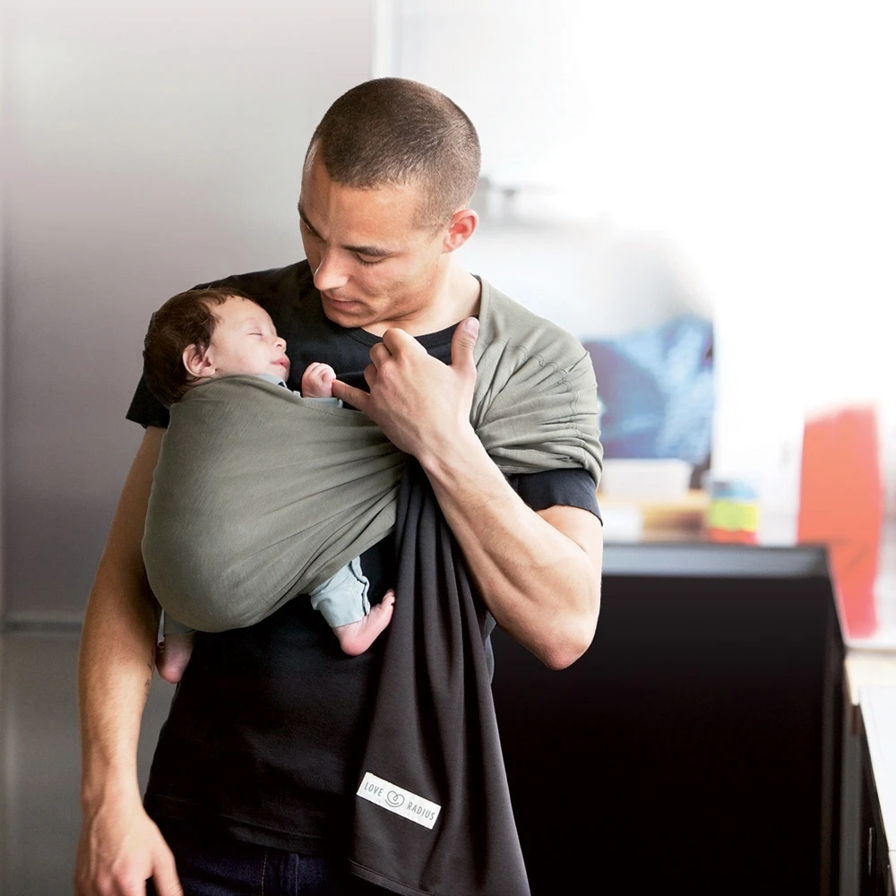 Le portage en porte-bébé sling interprété avec un nouveau tissu Love Radius. Simple, rapide et sans nœud, unisexe, taille unique.