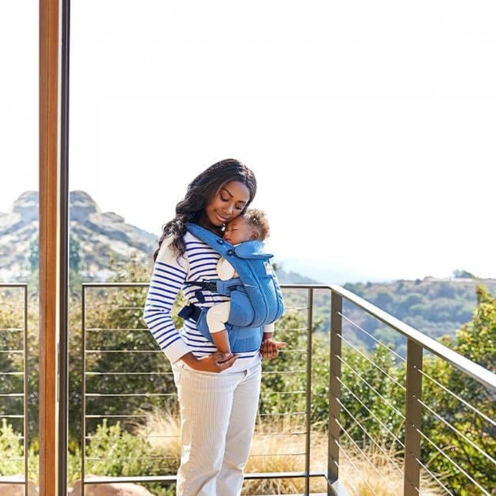 Porte bébé omni breeze bleu saphir de la marque Ergobaby. Ce porte-bébé vous permettra de porter votre enfant face à vous, face au monde, sur votre hanche ou sur votre dos tout en conservant une position physiologique. Le tissu est fabriqué à partir d’un tissu mesh softflex aéré pour permettre une bonne ventilation de l’air. Ce porte bébé est évolutif. Les bretelles sont rembourrées et entre-croisables.