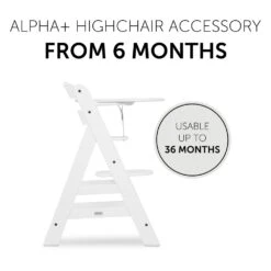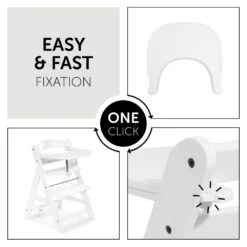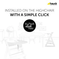 La Tablette alpha click white de la marque Hauck. Utilisable dès 6 mois, elle s’utilise uniquement pour les chaises hautes en bois Alpha+. La tablette s’installe en un click grâce à son système de fixation très simple, donc pas besoin d’outils ! Large et spacieuse avec les bords relevés, le plateau repas est l’accessoire indispensable pour éviter de faire tomber nourriture ou jouet au sol. Pour son enfant, on recherche des matériaux solides, la tablette est donc très robuste. Puis, facile à nettoyer, le plateau robuste sera idéal pour l’usage quotidien. Elle s’adaptera parfaitement à vos besoins.