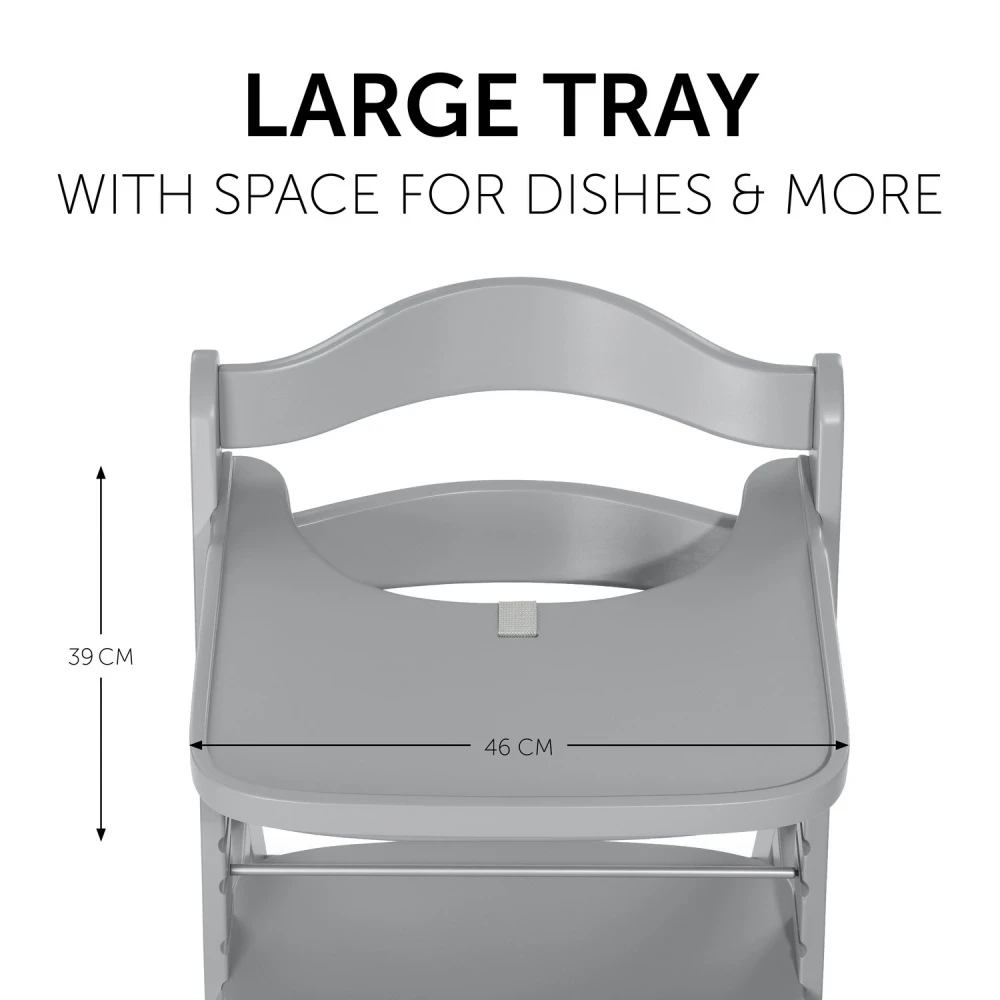 La tablette Alpha Click Bois gris de la marque Hauck. Utilisable dès 6 mois jusqu’à 36 mois, elle s’utilise uniquement pour les chaises hautes en bois Alpha+ ou Alpha+ Select. La tablette s’installe très facilement, en quelques secondes! Large et spacieuse avec les bords relevés, le plateau peut servir à la fois de plateau repas ou plateau de jeu. Pour son enfant, on recherche des matériaux de qualité et solides, la tablette est fabriquée en bois de hêtre durable. Elle est facile à nettoyer et sera idéal pour l’usage quotidien. Elle s’adaptera parfaitement à vos besoins.