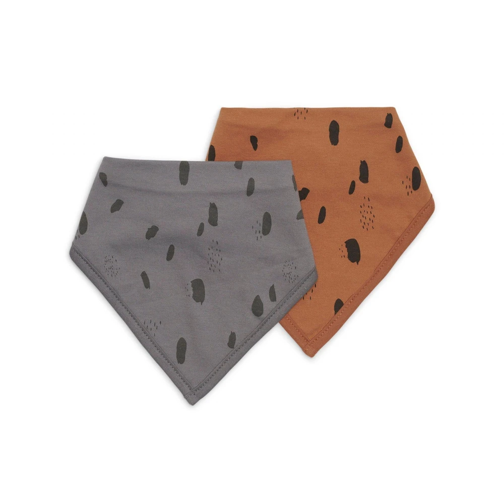 Lot de 2 bavoirs bandana spot caramel et storm grey