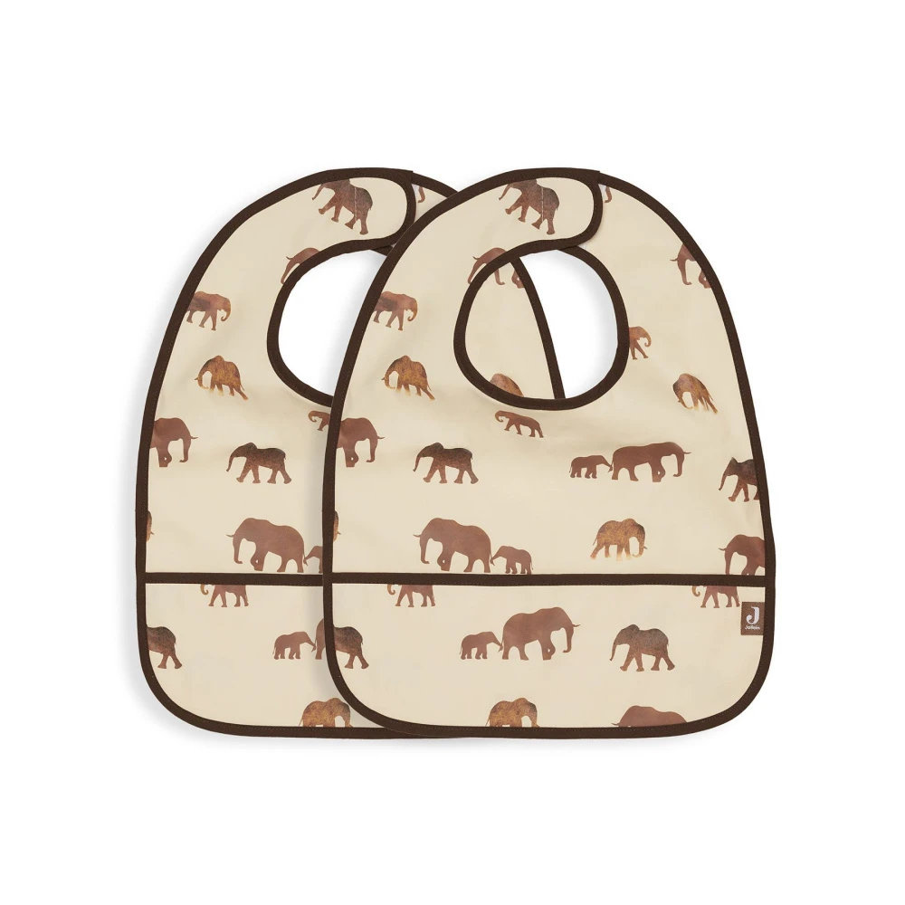 Le Lot de 2 bavoirs imperméables savannah de chez Jollein. Les lots de bavoirs sont idéals pour votre bébé lorsqu’il commence à manger comme un grand pour lui éviter de salir ses jolis vêtements. Le lot vous permet d’avoir à disposition un bavoir propre à portée de main. Ces bavoirs sont dotés d’un récupérateur pour éviter à la nourriture de tomber.