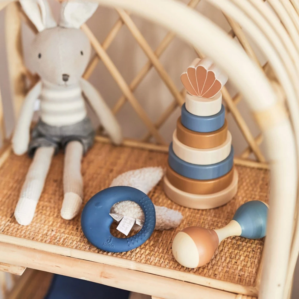 Le Pyramide à empiler shell blue de chez Jollein. La pyramide à empiler en bois est idéal pour développer la motricité de votre enfant. La pyramide empilable arbore de jolies couleurs pastels qui ne laisseront pas votre bébé indifférent. Ce jouet d’éveil est parfait pour la coordination œil main de votre bébé.