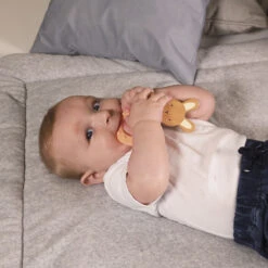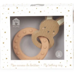 Anneau de dentition en silicone lapin orange de la marque Kaloo. Ce produit est idéal pour soulager votre enfant lorsque ses premières dents pousseront. La tête de l’animal en bois en fait un produit très élégant et il amusera votre enfant pendant qu’il mâchera l’anneau. Le silicone est sans risque pour votre bébé.