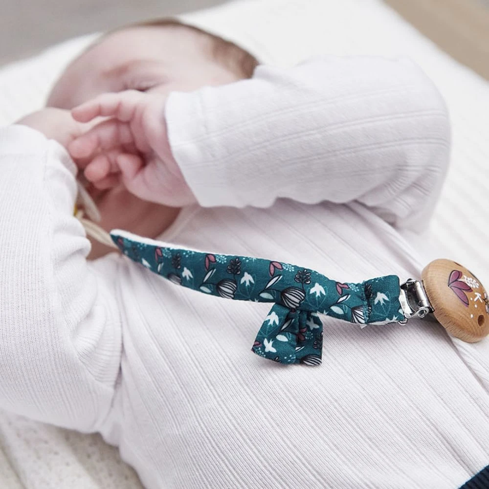 Attache tétine nature de la marque Kaloo. C’est le produit parfait pour que votre enfant ait toujours à portée de main sa sucette et qu’il ne la perde pas. L’attache tétine est composé en deux matières. L’attache tétine se clipse très facilement aux vêtements.