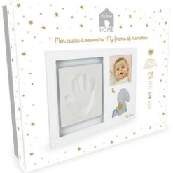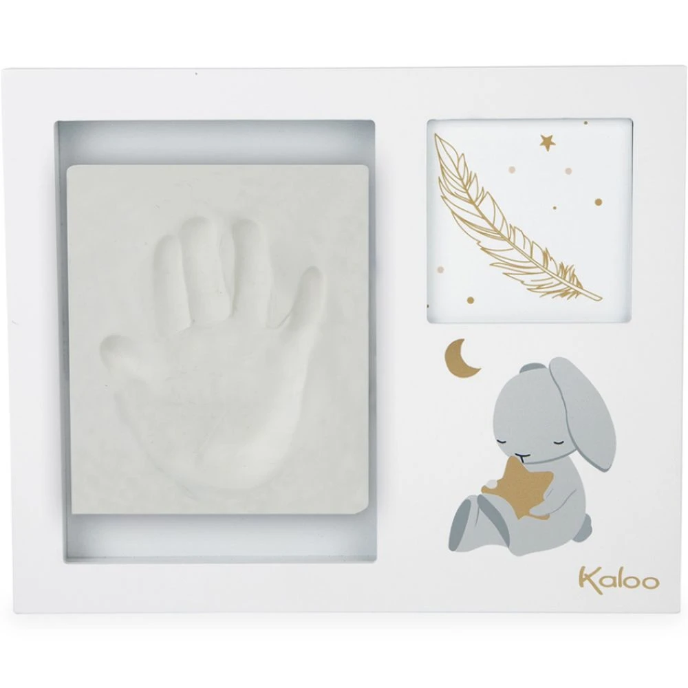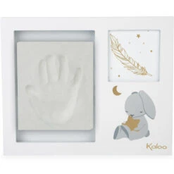 Mon cadre à souvenirs de la marque Kaloo. Ce coffret souvenir vous permettra de placer une photo et une empreinte du pied ou de la main de votre enfant. C’est un produit parfait pour garder en souvenirs les premiers pas de votre nourrisson. Ce produit est livré avec 1 sac d’argile, 1 emporte-pièce, 1 rouleau en bois, 1 ruban et 1 paille. Le kit de moulage en argile est très simple d’utilisation.
