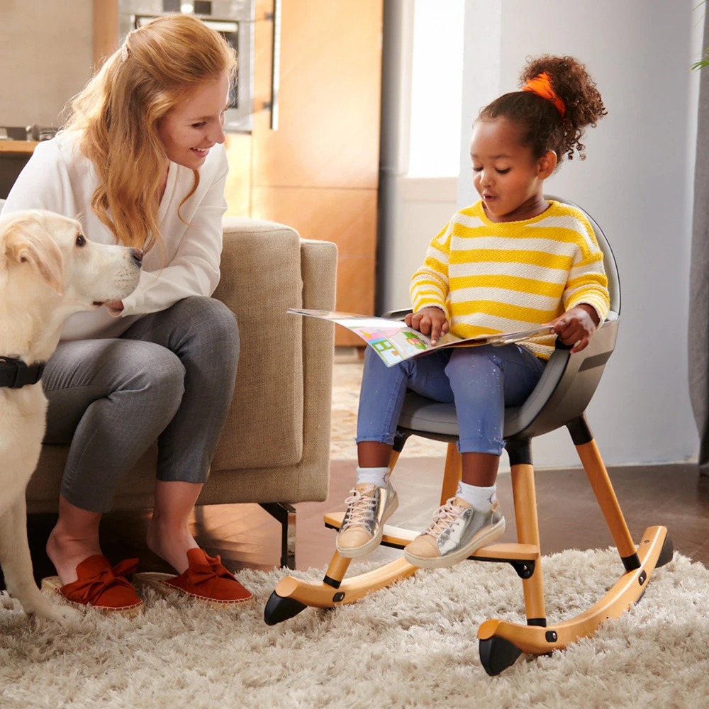 Les patins fabriquées en bois de hêtre peuvent être fixées à la chaise FINI pour créer une chaise à bascule pour un enfant plus grand .