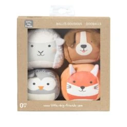 Les dooballs – lot de 4 balles doudous ferme de chez Little Big Friends. Original, ces Dooballs seront parfait pour éveiller votre bébé. Il pourra les attraper facilement. Les matières sont douces. Les oreilles sont en tissu craquant. Chaque Dooballs possède un grelot avec un son différent.