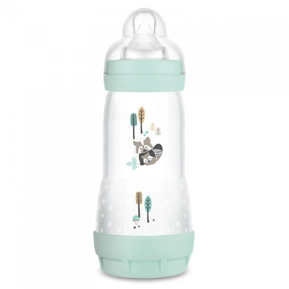 Optez pour le Biberon anti-colique 320ml easy start aqua de chez Mam. Utilisable de 4 à 12 mois. Ce biberon Mam a un col large pour un remplissage et un nettoyage facile. La base aérée anti-colique régule l’entrée d’air et respecte le rythme de tétée de bébé.
