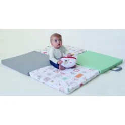 Le Matelas tapis malin indian spirit de chez Tinéo. Le tapis malin est évolutif. Il servira de tapis de jeux à votre bébé. Plié en deux votre bébé pour l’utiliser comme couchage. Parfait pour les voyages. Vous pourrez le transformer le pouf également.