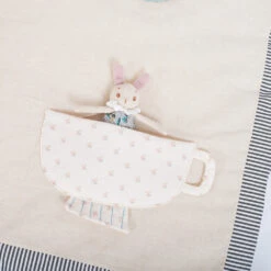 Le tapis d’éveil de la collection Après la pluie, imaginé par Moulin Roty. Avec ses multiples activités différentes, il invite au jeu et à l’exploration (d’un papier crissant, d’un lapin à grelot, d’un miroir, d’un pouët…). Votre bébé pourra ainsi se créer un petit monde à lui, confortable tout en développant ses sens. Le tapis Après la pluie s’intègrera facilement dans la chambre de votre enfant pour lui offrir des heures de jeux !