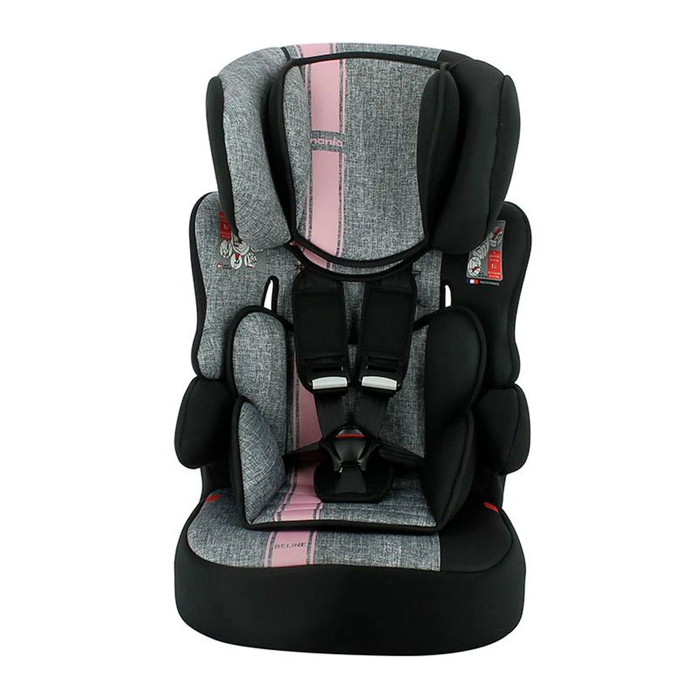Le siège auto BELINE du groupe 1/2/3 de la marque Nania. Il est utilisable de 9 à 36 kg soit de 2 ans à 10 ans environ. Ce siège auto Nania est fabriqué et testé en France, de plus il est homologué selon la norme ECE R44/04. Il s’installe face à la route (à l’arrière de la voiture) à l’aide de la ceinture de sécurité à 3 points du véhicule.