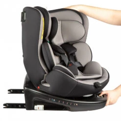 Le Siège auto evolvefix i-size gray mist de chez Bebeconfort. Utilisable de 40 à 150 cm soit de la naissance jusqu’à ses 12 ans environ. Ce siège auto pivotant accompagnera bébé durant sa croissance en toute sécurité. Ce siège auto est équipé des normes R129.