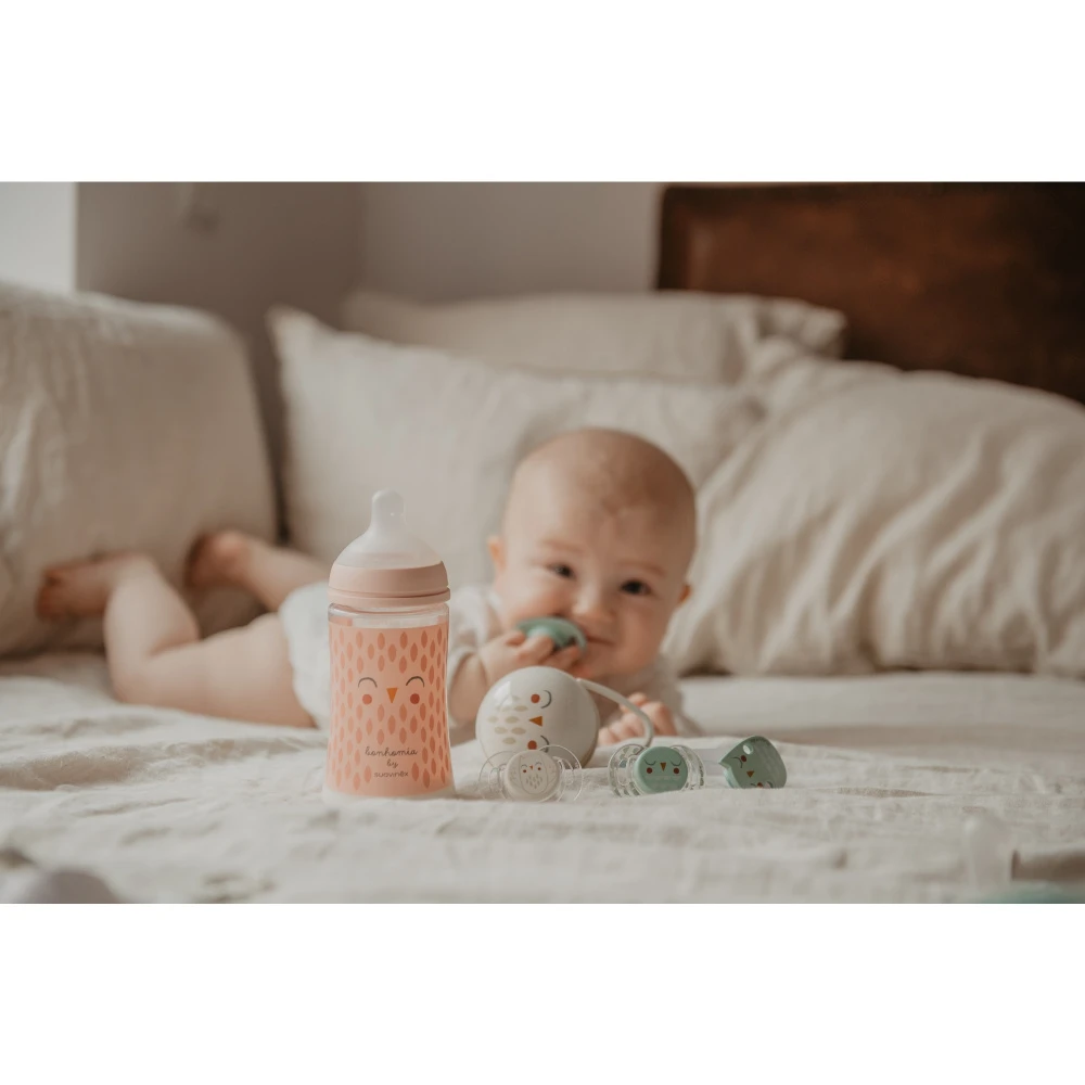 Les biberons, tétines et sucettes Suavinex sont recommandés par l’Association Espagnole d’Orthodontistes Pédiatriques.